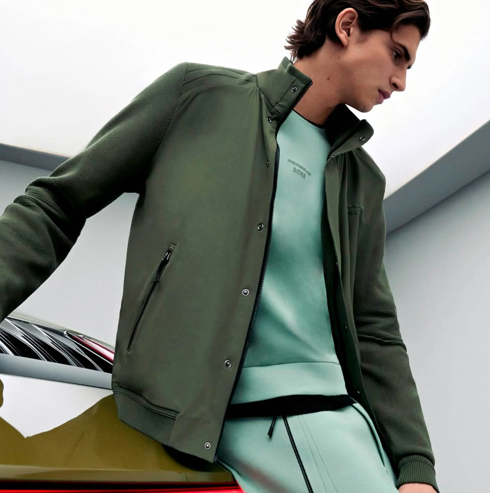 • Cuello, puños y bajo de punto elástico