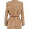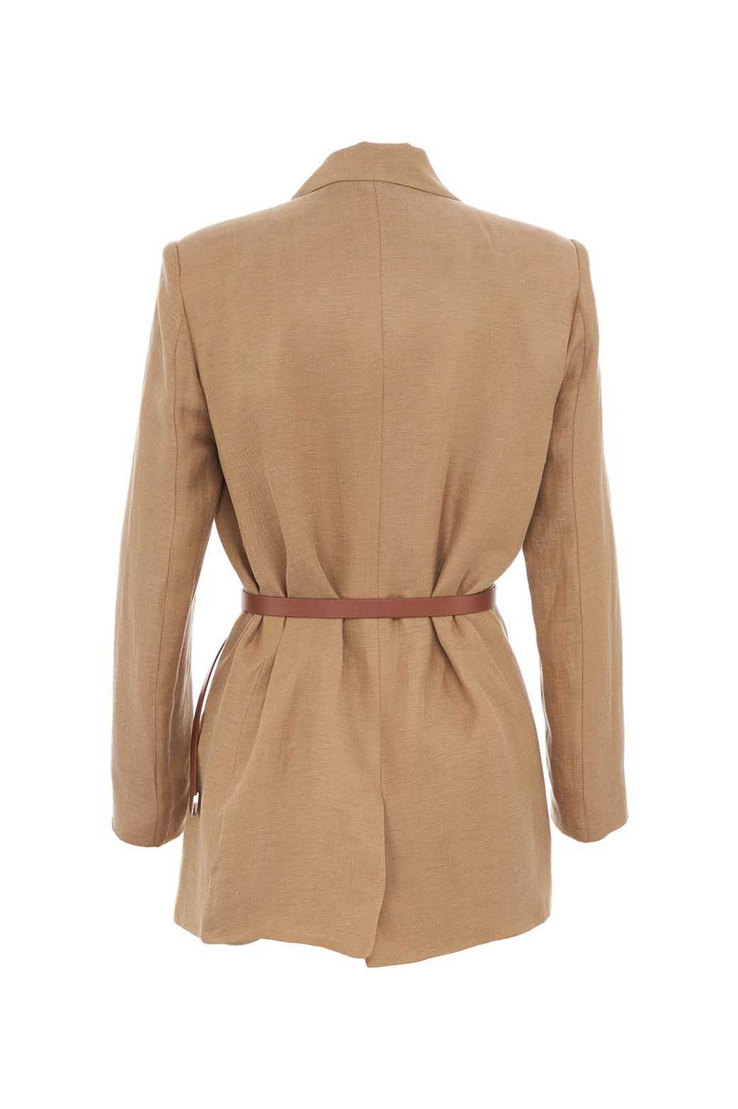 Cintura ceñida con cierre de hebilla central en la espalda. Corte holgado. Hombreras manga larga y bolsillos con solapa.