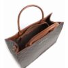 Cierre de cremallera. Un bolsillo frontal abierto y otro con cremallera. Bolsillo interior abierto. Asas fijas de mano y hombro. Medidas (alto x ancho x fondo): 27 x 49 x 14 cm.